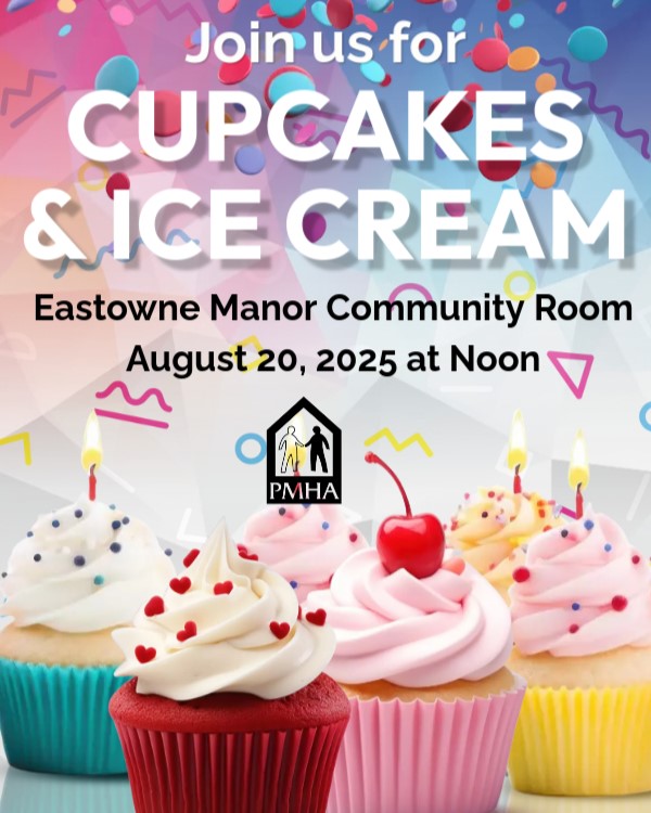 Cupcakes & Ice Cream at Eastowne Manor + Add to Google Calendar + iCal / Outlook export The event is finished. Date Aug 20 2025 Expired! Time 12:00 pm - 1:00 pm Location Eastowne Manor community room Share this event Search for: Recent Posts Hometown Bank Scouting for Fraud Workshop 2026 Board Meeting Schedule PMHA Public Hearing Notice PMHA Section 8 Waiting List Closing Kent Roosevelt Rough Riders join PMHA Kids Summer Camps