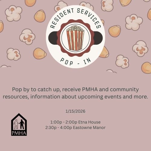 Resident Services Pop-In at Etna House + Add to Google Calendar + iCal / Outlook export The event is finished. Date Jan 15 2026 Expired! Time 1:00 pm - 2:00 pm Location Etna House community room Share this event Search for: Recent Posts 2026 Board Meeting Schedule King Kennedy and Skeels Children’s Christmas Party PMHA Public Hearing Notice Blooming on the Lawn PMHA Section 8 Waiting List Closing