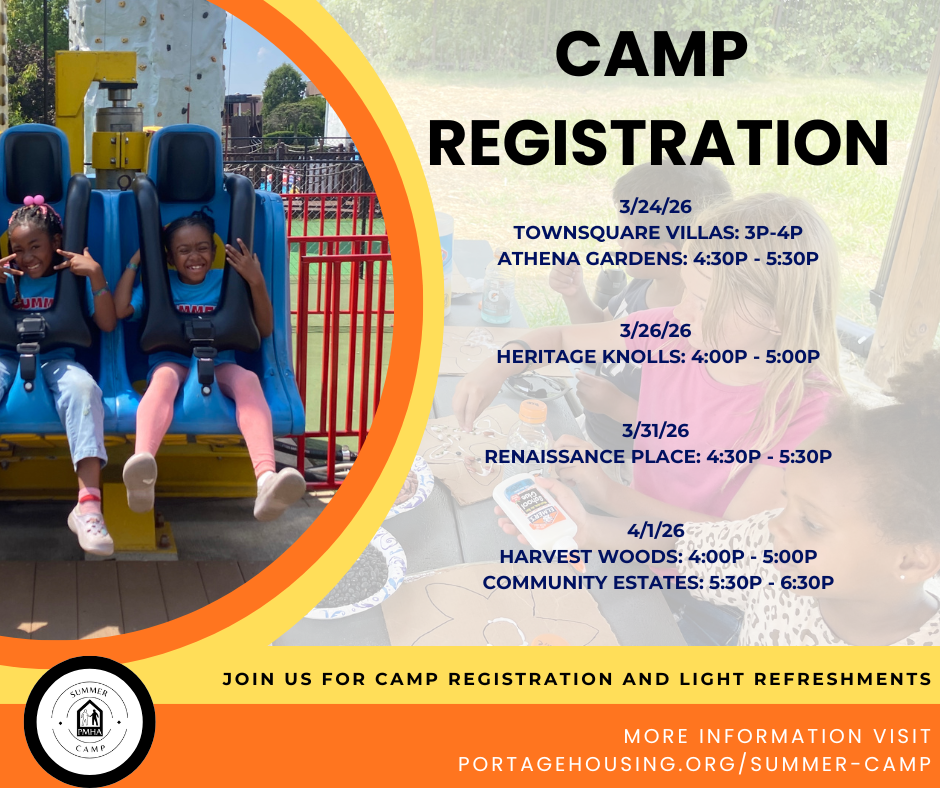 Summer Camp Registration at Athena Gardens + Add to Google Calendar + iCal / Outlook export The event is finished. Date Mar 24 2026 Expired! Time 4:30 pm - 5:30 pm Location Athena Gardens Share this event Search for: Recent Posts Portage County Board of Commissioners Notice of Public Hearing Ohio Means Jobs 4th Annual Reentry Resource Fair 2026 Board Meeting Schedule PMHA Section 8 Waiting List Closing Kent Roosevelt Rough Riders join PMHA Kids Summer Camps